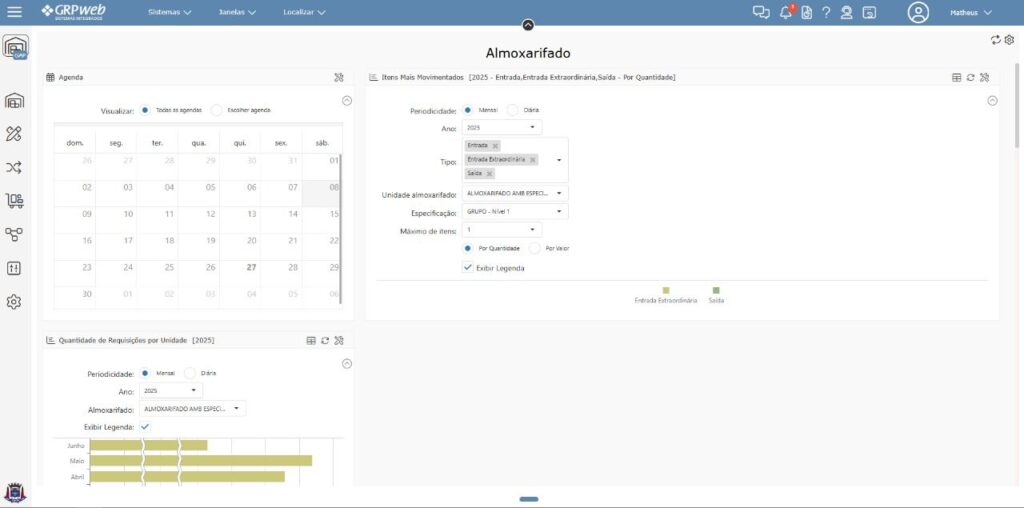 A migração para o Almoxarifado WEB resolveu o problema central de acesso e trouxe uma interface mais leve, facilitando a adesão dos usuários. O sistema web permite que os responsáveis acessem múltiplas unidades de estoque na mesma tela.